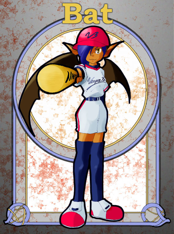 おなじみ野球用具。現在使われているのはチタンやアルミの合金からなる金属バットと、アオダモから作られる木製バットの二種類が主流デス。絵の方はアレですが、実際のトコロ、コウモリのBatとは何の関係もありません。