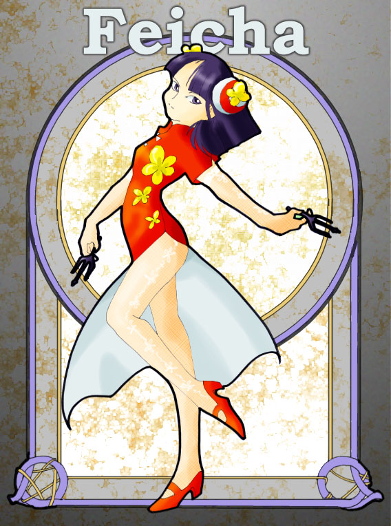 先端が三叉に分かれた投擲具。昔の中国で使用され「Feicha」は漢字表記の「飛叉」を中国語の発音。大学時代以来殆ど使用していない中国語の辞書で確認したので間違いない、ハズ。見てくれが魚取りの銛の先端にそっくりなので、漁民が手軽な投擲武器として使い始めたものと推測されます。