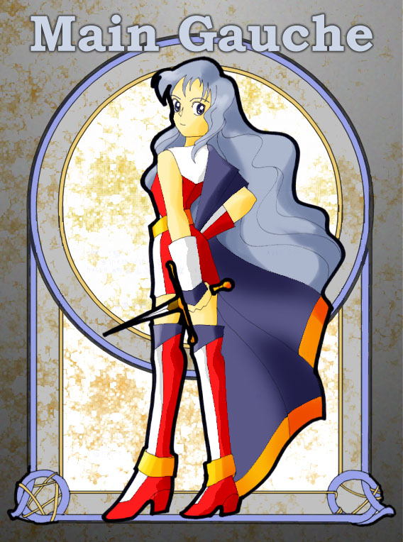 フランス語で「左手用短剣」という意味。右手にメインウェポン(レイピアとかね)を持ち、補助用に左手に持つのが一般的な使い方です。まんまですが。