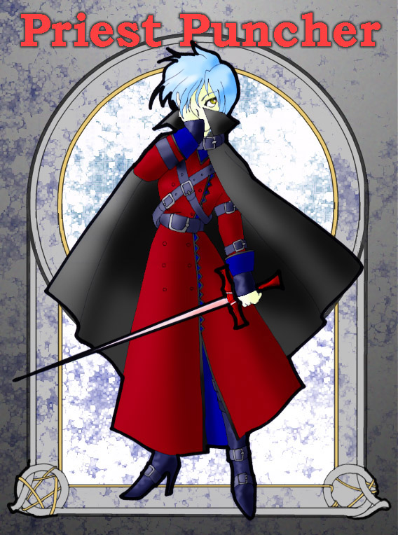 そうなると、「Punch」には「穴を開ける」という意味もありますからにして、「Priest」に穴を開ける、すんごい尖がった剣かなあ、と判断して上図のようなデザインの剣になったわけです。でも、今思えば剣山みたいな豪快なデザインなのかもしれないデスねぇ。