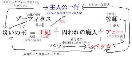 せっかくだから相関図書いてみました。・・・余計わかりにくくなったかも。