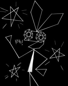 あと、コレ余談ですけど、今回描いたビブリ君は、今までの歴代表紙のキャラの中では一番本物に似てます。と、いうより、このキャラの場合、似せない方が難しい気がしますが。本物はもうちょっとだけ丁寧に描かれてるんですが、概ねこんな感じです。だから決して手抜きではないんデスよ。わかるかナ?