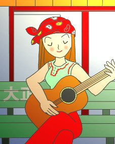 特技はアコースティックギターとフォークソングを歌うこと。ただし、ギターの方はかなりレパートリーが狭いらしく、「アルハンブラ宮殿の思い出」ぐらいしか弾けないし、歌のほうは一曲歌ってくれたのを聴いた限りでは、まぁ普通だネ、というところデス。